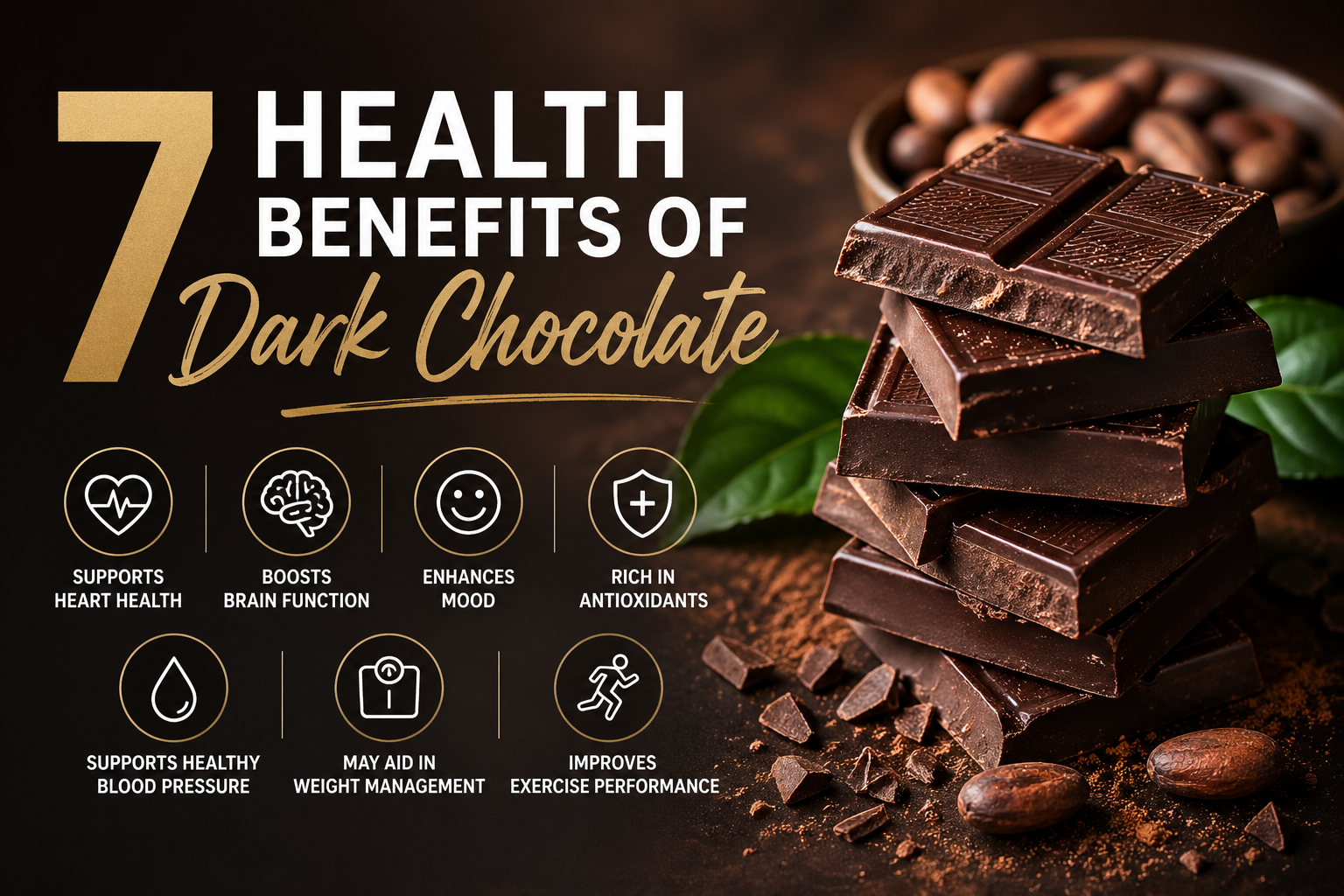 Dark chocolate is not just a treat — it's packed with nutrients and antioxidants that can improve your health. Here are 7 scientifically proven benefits of eating dark chocolate...